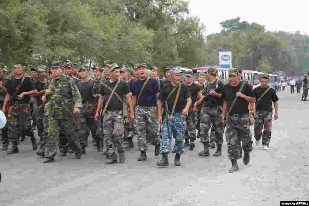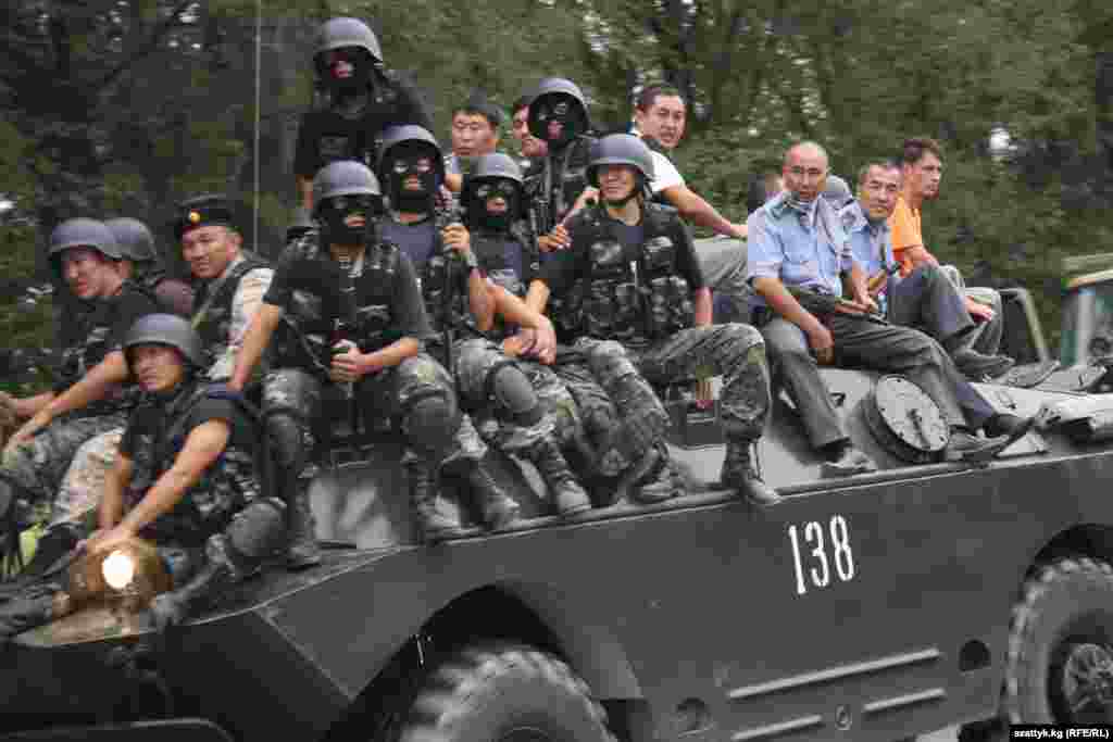 Бишкекке келаткан жол толук буулуп, аскер техникалары тартылып, атайын бөлүктөрдүн аскерлери, милиция кызматкерлери даяр турушту.