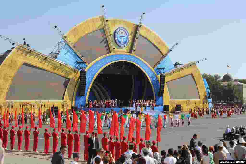Башкы майрам борбор калаадагы Ала-Тоо аянтында саат 10до башталды. Ага президент Алмазбек Атамбаев баш болгон бийлик өкүлдөрү катышып, элди куттукташты.