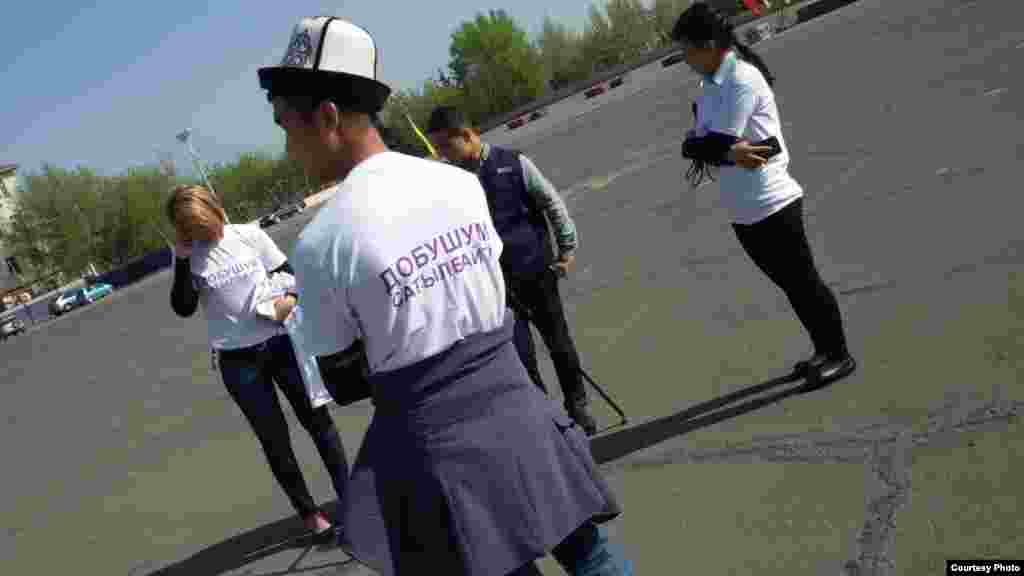 Ош шаарында шайлоо күнү журналист Жылдыз Бекбаева баштаган активисттер "Добушум сатылбайт!" деген акция жүргүзүштү.