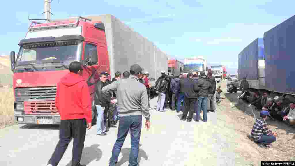 Ушул тапта Кытайдан жүк тарткан жүздөн ашык автоунаанын айдоочулары Ат-Башы районунун аймагындагы таразага тартуу бекетинде үч күндөн бери токтоп турат.