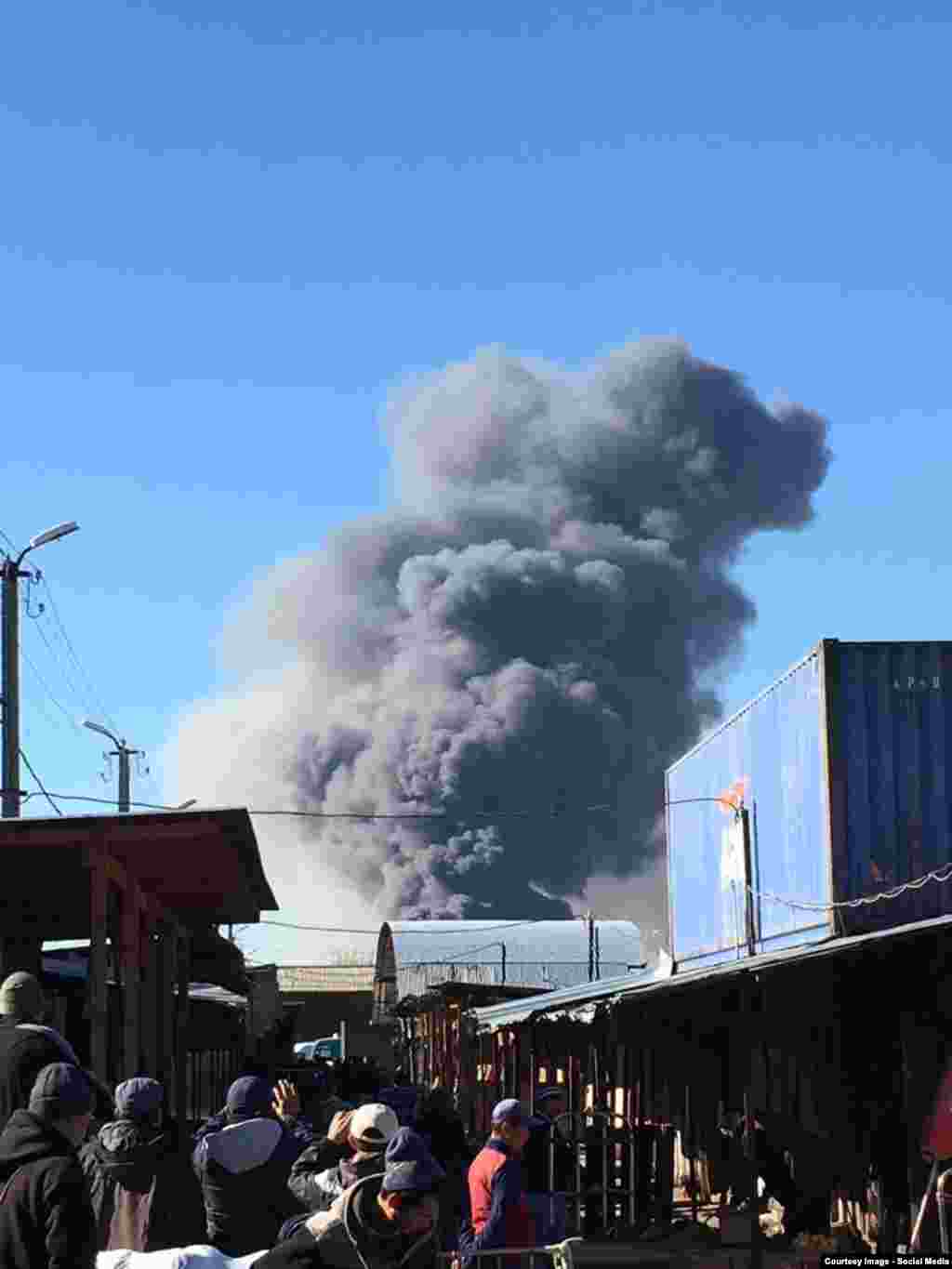 Алгачкы маалыматтар боюнча, шаардын Толстой жана Садыгалиев көчөлөрүнүн кесилишиндеги жыгач сакталган кампа күйгөн.
