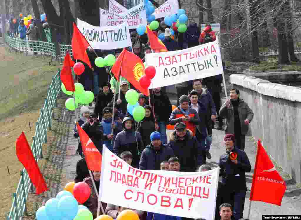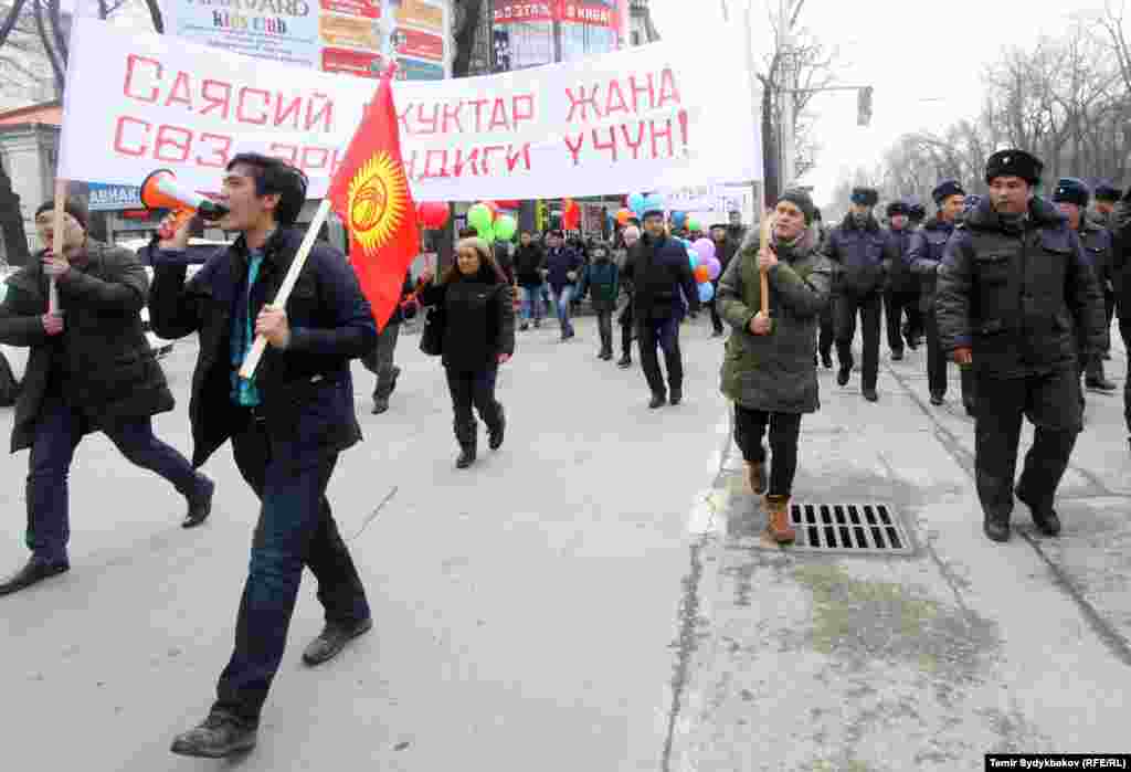 Бишкекте саясий укуктарды жана сөз эркиндигин коргогон тынчтык жүрүш болду. Дайыр Асанов атындагы Жеңиш паркынан башталган жүрүш Байтик баатыр көчөсү менен ылдый уланып, Уркуя Салиеванын эстелигинин алдында жыйынтыкталды. Иш-чарага парламент депутаттары, саясатчылар, укук коргоочулар, журналисттер жана жарандык активисттер катышты.