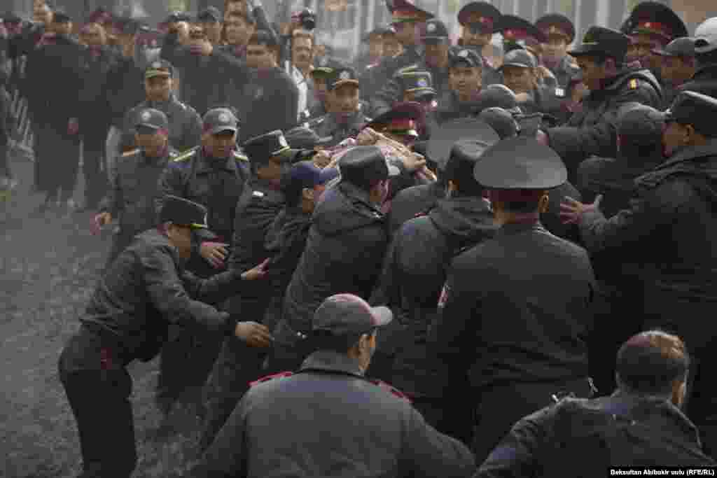 УКМК алдындагы Садыр Жапаровду коргоо митингинде милиция менен эл тирешти. Митингчилер милициянын курчоосун жарып өтүп имаратка кирүүгө аракеттенди. Мунун негизинде бир нече адам камалды.