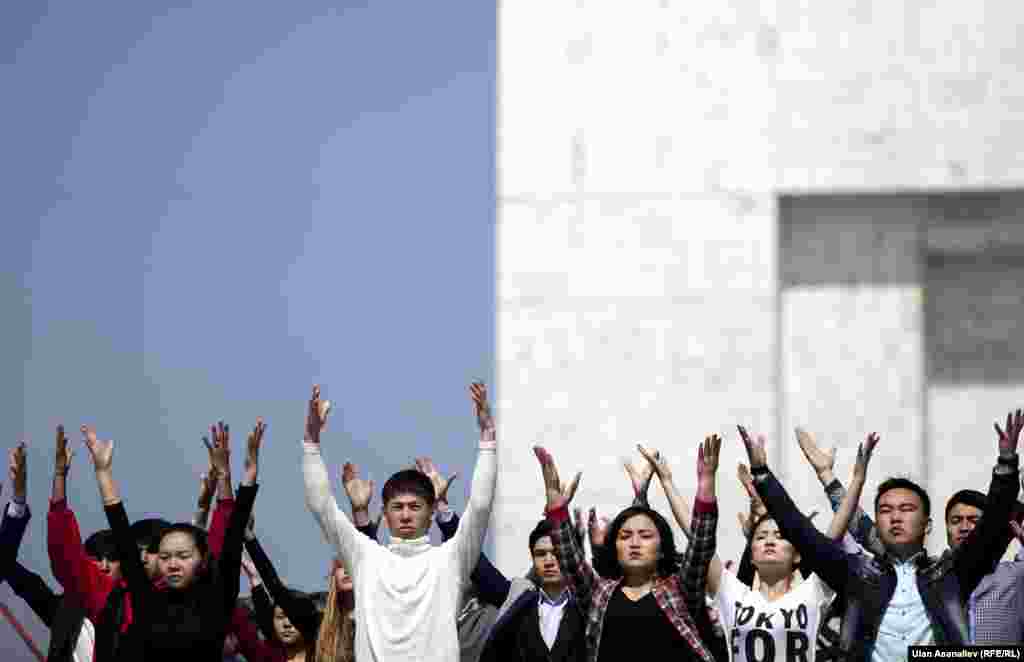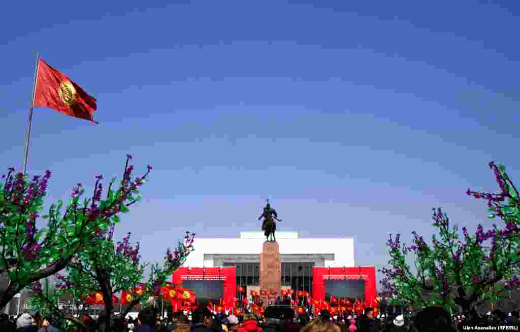 Бишкектеги Ала-Тоо аянтында апрель ыңкылабына арналган театрлаштырылган иш-чара өттү. 2010-жылдагы Курманбек Бакиевди тактыдан кулаткан элдик толкундоолор актерлордун аткаруусунда көрсөтүлдү. Келгендерге концерт тартууланды. Алгач шаар мэри Албек Ибраимов сөз сүйлөдү.
