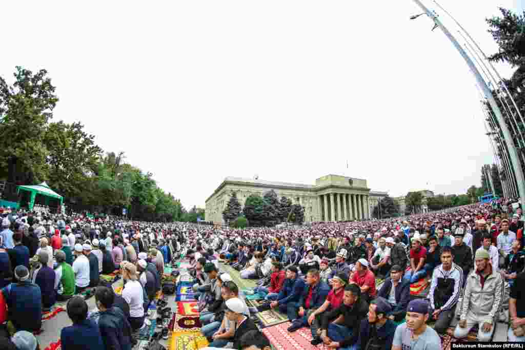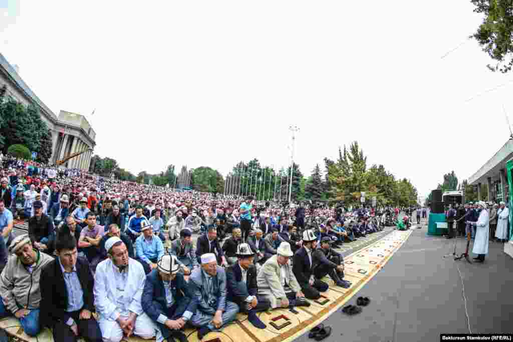 Бишкекте айт намазын окуу үчүн Эски аянтка 30 миңден ашуун адам чогулду.