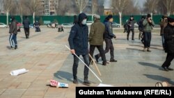 Зомбулукка каршы жүрүштүн катышуучулары менен кошо кармалып чыккан укук коргоочу Динара Ошурахунованын айтымында, милиция имаратынын ичинде элүүдөй кыз кармалып турат. Алар милицияга түшүнүк кат жазышууда.