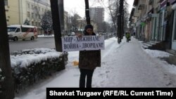 Алексей Навальныйды колдоп чыккан пикетчи. Бишкек. 2021-жылдын 23-январы.