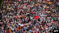 Учурда өлкө борбору Янгон шаарына кирчү негизги жолдор, көчөлөрдү автоунаалар тороп турат. Шаарда болсо аскердик жетекчиликке каршы демонстрациялар өтүүдө. Ага он миңдеген адамдар катышып, 1-февралдагы төңкөрүштөн соң камакка алынган Аун Сан Су Чжи баштаган жетекчилерди эркиндикке коё берүүнү талап кылып жатышат.