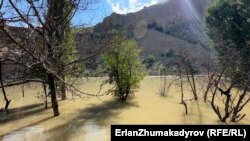 Жабыркаган бүлөнүн автоунаасы да суу алдында калган. Таттыбүбүнүн атасы Нурманбет Алиев үйдү 50 жыл мурда салган экен.