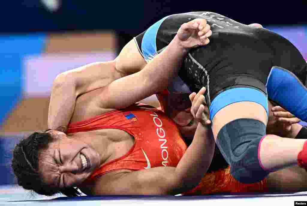 Айсулуу монголиялык Орхон Пуревдоржго утулуп жатып, акыркы секунддарда жеңип кетти.Таймаштын биринчи бөлүгүндө алты упай менен монгол балбан кызы алдыга чыккан. Экинчи бөлүктө Айсулуу алгач эки упай, кийин беттештин бүтөрүнө аз калганда төрт упайлык ыкманы жасап, эсепти теңеп, упайлардын сапаты боюнча жеңишке жетти (6:6).
