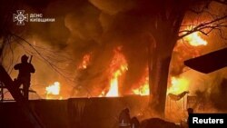 Өзгөчө кырдаалдар кызматынын түнкү отчетунда чабуул маалында башталган өрт тууралуу айтылат. Днепровск районунда өрт тогуз кабат үйдүн чатырына жайылган. Бир аял каза таап, 27 адам эвакуация болгон.