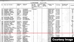 “1942-жылдын 14-июлунда өпкө оорусунан өлдү” деп жазылып турат. Ошондо бир жылдык кордуктан кийин, 22 жашында көз жумган. Жакын кишиси катары апасын көрсөтүптүр, “Кабаева Толу” деп так жазылган.
