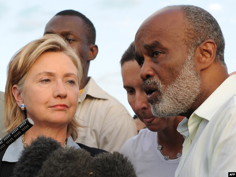 Хиллари Клинтон Гаитинин президенти Рене Превал менен сүйлөшкөндөн кийин өлкөнү бүлгүндөн толук калыбына келтирүү үчүн Вашингтон жардамын аябасын айтты: