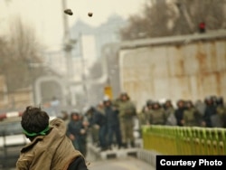 Оопозициянын тарапкерлери полициянын атайын күчтөрүн ташбараңга алышууда. Тегеран. 27-декабр, 2009-ж.