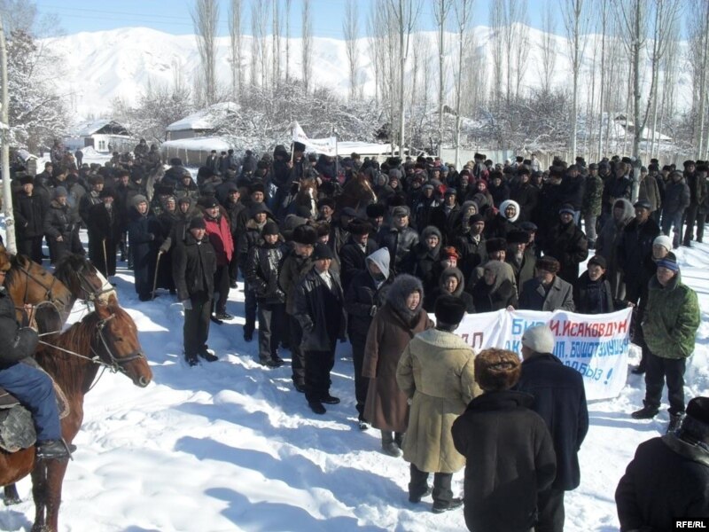2010-жылдын 10-февралында саарлап Алай райондук акимчилигинин Гүлчөдөгү кеңсесинин алдына топтолуп, колдоруна “Биз генералдын актыгына ишенебиз!”,”Генерал Исаков бошотулсун!”, “Биз Исаковдун акталып, бошотулушун талап кылабыз!” деген плакаттарды кармап турган жети жүз чакты кишиге аткаруу бийлигинин өкүлдөрү басып барып, жолугушкан жок.