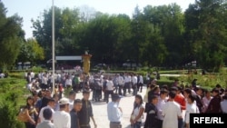 Университеттин башкы корпусунун алдына чогулган эки жүз чакты студент бир саат бою окуу жай жетекчилерин сыртка чыгышын күтүп, алардын койгон талаптарын чечип берээрине ишенип турушту.