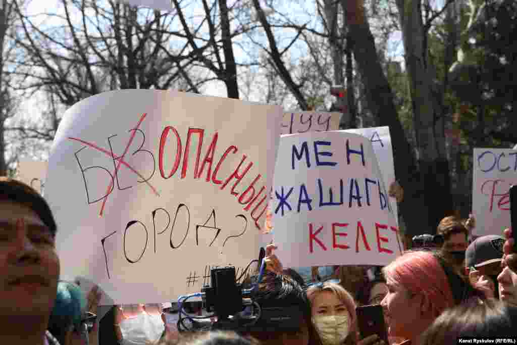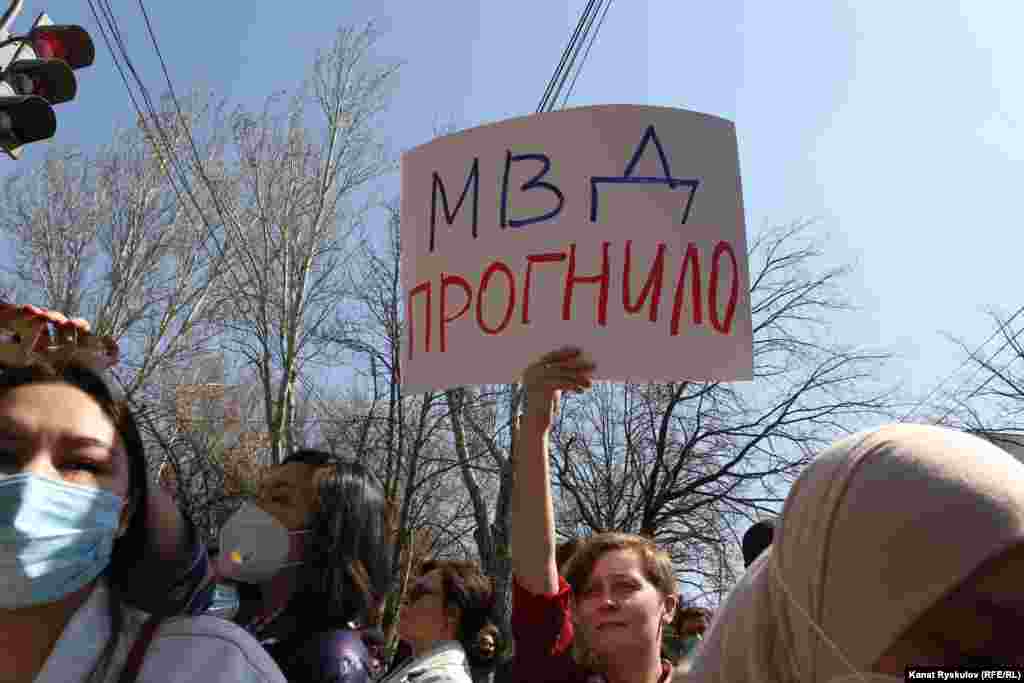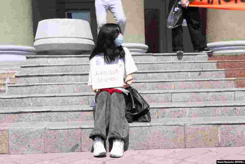 Бишкекте Ички иштер министрлигинин имаратынын алдында жарандык активисттер, блогерлер, укук коргоочулар, шаар тургундары Айзада Канатбекованын өлүмүнө байланыштуу нааразылык акциясына чыгышты.