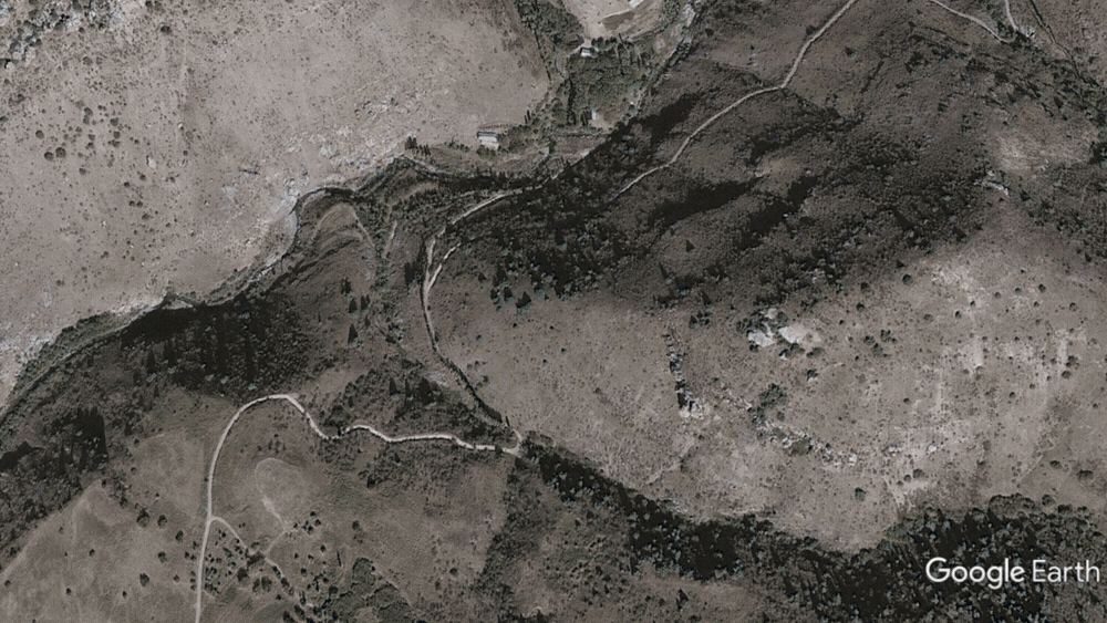 2016-жылдын августунда тартылган сүрөттөрдө Сарысуюнсой жана Чотисой дарыялары Шоввозсойго куйган жердеги токой ичинде үйлөр көрүнөт.