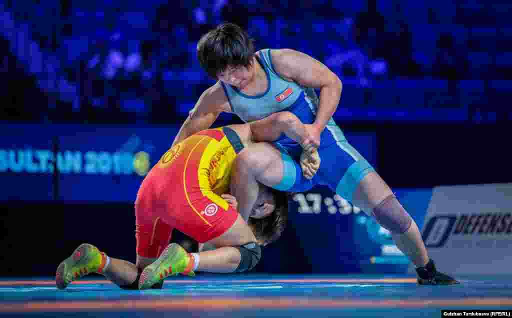 Жарым финалда беттеште Айсулуу Тыныбекова түндүк кореялык Жоң Сим Римди 7:0 эсебинде жеңип алды. Тыныбекова күрөш боюнча дүйнө чемпионатынын финалына чыккан алгачкы кыргызстандык балбан кыз.