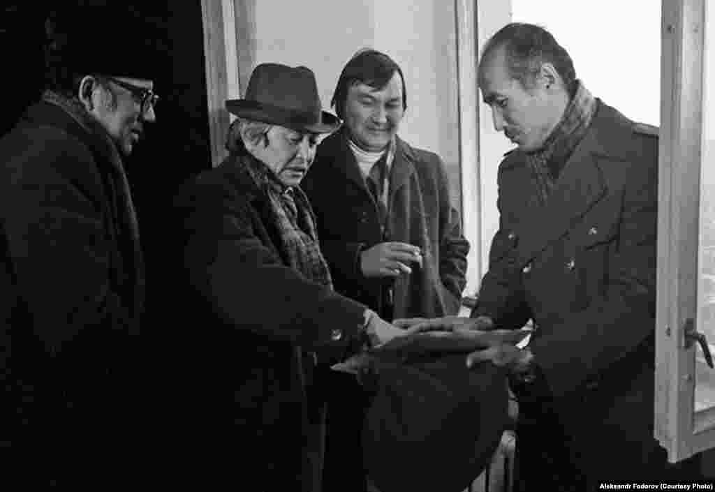 Болот Миңжылкыев белгилүү сүрөтчү, актер Сүймөнкул Чокморов менен.
