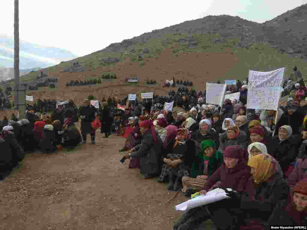 Кадамжай районунун Майдан айыл өкмөтүнүн Шамбесай айылында кенди иштетүүгө каршы митинг болуп жатат.
