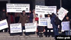 28-ноябрда академиянын башкы имаратынын алдына кыскарган институттардын өкүлдөрү “Илимди жоготпогула!”, “Кыскартууну талкалоо менен айырбаштабагыла!” деген өңдүү жазууларды көтөрүп чыгышты. Нааразы тарап академия жетекчилигинин аракеттерин кыскартуу максатын көздөгөн жасалма реформа деп баалашууда.