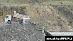 Инвесторлор керек болгон күндө да алар өздөрүнүн таштандыларын жабык жерге төкпөй жатпайбы. Казган жери деле жабык эмес. Ачык эле жерден ташып өтүүдө, таш жүктөгөндөй эле. Машинелери ачык, айылдын ортосунан өтөт. 35-40 тонналык жүк менен өтүшөт.