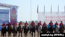 “Кыргыз аты” ат оюндар фестивалында улуттук ат оюндары: тыйын эңмей, кыз куумай, оодарыш, кунан чабыш, бышты жарыш, жамбы атыш, тайган агытуу, бүркүт салуу жана алман байге ат чабыш мелдештерин төкмө акындар, элдик өнөрпоздор коштоп келишкен.