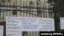 Ал ортодо маркум Мыктыбек Сулаймановдун жакындары “Жогорку Соттун Аскаровго болгон өкүмүн канчага күтөбүз?”, “Укук коргоочулар, канчага чейин мыкаачы кылмышкерди коргойсуңар?” “Райондук соттун чечими күчүндө калышын сурайбыз” деген плакаттарды Жогорку Соттун имаратына асышты. Алар эл аралык уюмдардын басымынан улам сот иши создугуп жатат деп эсептешет.