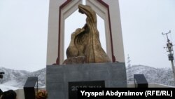 “Мындан ары былтыркыдай коогалаңды көрбөйүн” деп, жүзүн чыгыштан батышка бурган эненин бейнеси түшүрүлгөн эстеликке өткөн жылы май-июнь окуясында жакындарынан айрылгандар менен коомчулуктун өкүлдөрү гүл коюшту.
