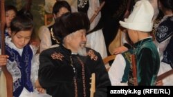 Ал эми Саадабай Шатманов комузчунун курдашы. Ош шаарынан атайын концертке катышуу үчүн келген: