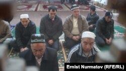 Бирде эңкейсе, бирде колдорун кулагына ала коюп, намазга жыгылгандар имамдын кыймыл-аракетин кайталап жатышты. Бири калпагын башына кондуруп, башкасы допусун баса кийип намазга жыгылып жаткандардын көптүгүнөн мечиттин ичи жыкжыйма.