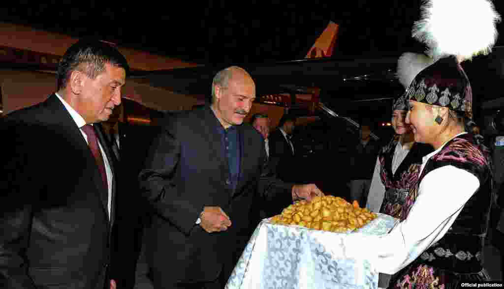 Беларус лидери Александр Лукашенкону “Манас” эл аралык аэропортунан өкмөт башчы Сооронбай Жээнбеков тосуп алды.