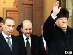 Борис Ельцин (оңдо) Кремлди Владимир Путинге (солдо) калтырды, 31-декабрь, 1999
