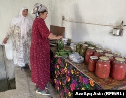 Ал биз менен сүйлөшүп жаткан учурда бадыраң туздап, банканын ооздорун жаап жатты.